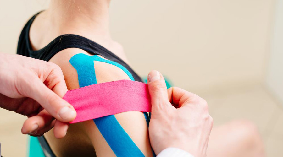 Kinesio taping is designed to support muscles and joints in order to facilitate the body’s natural healing process, all without restricting range of motion.